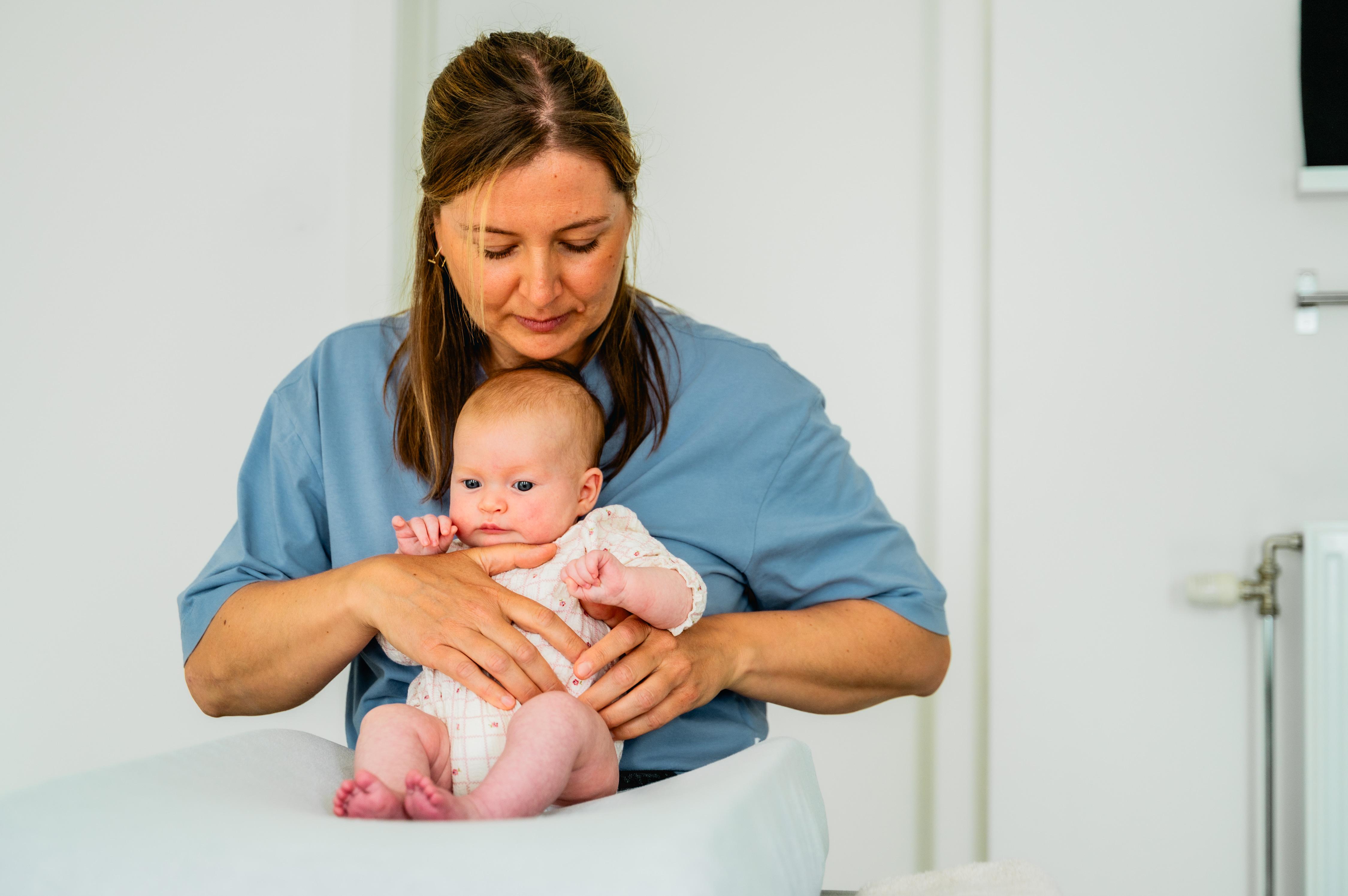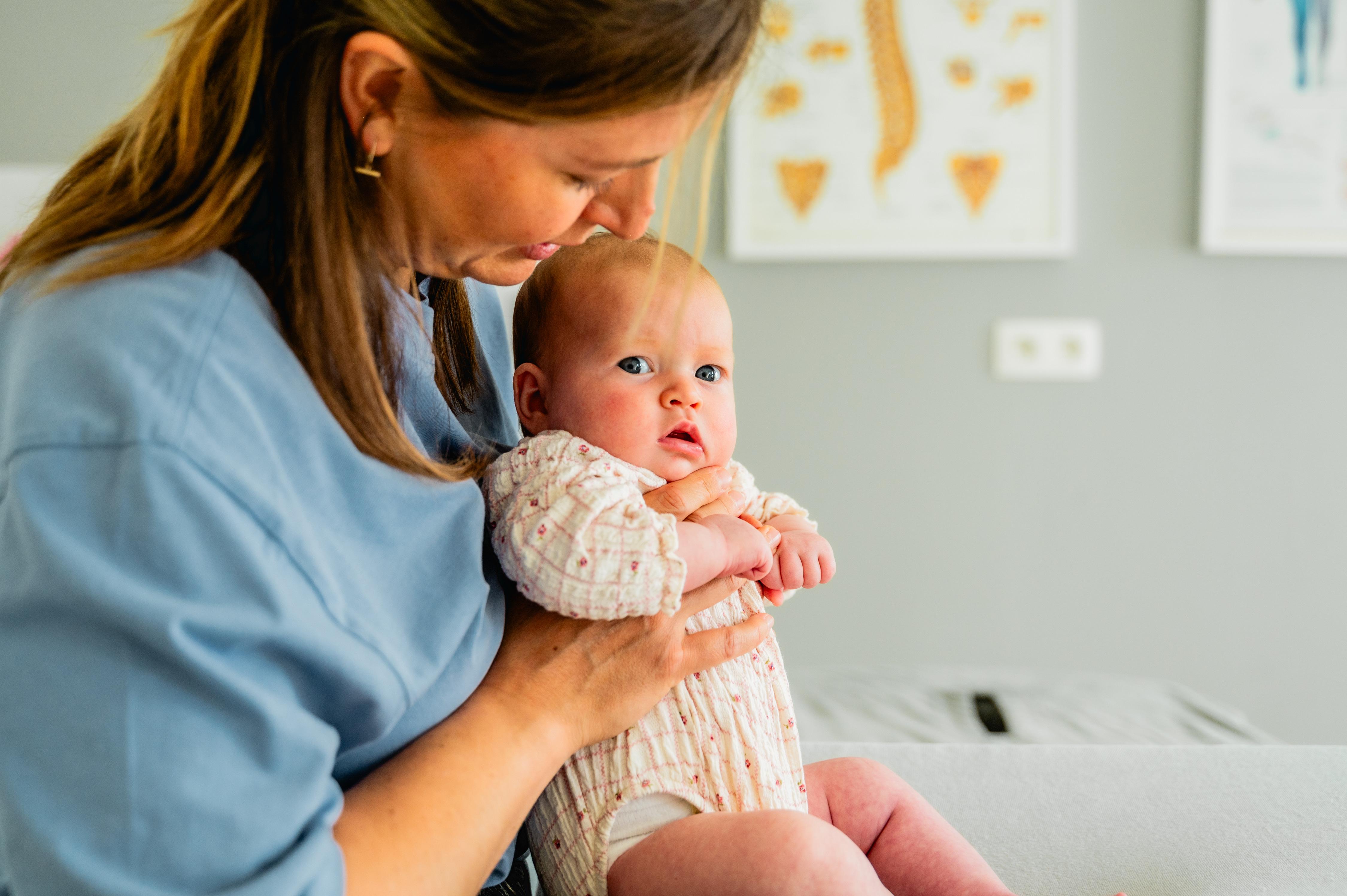 Indien er geen klachten zijn, is het aan te raden om 6 weken na de geboorte eens langs te komen voor een check up van je baby. Bij klachten kom je uiteraard eerder. Al vanaf dag 1 kan een baby behandeld worden.